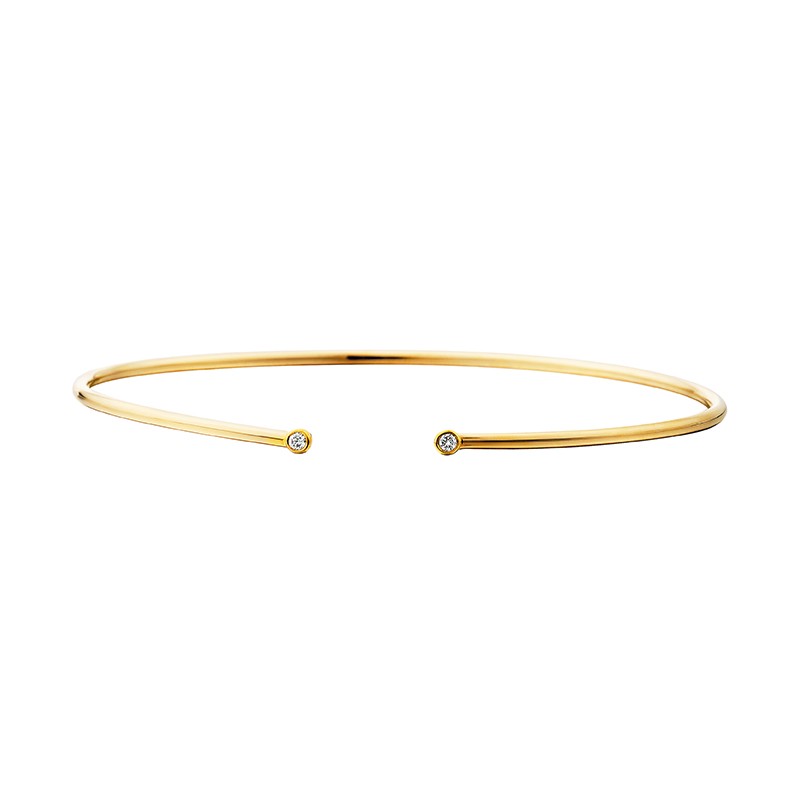 Sleek and modern at the right price. This sterling silver cuff bracelet has a 1/2 micron yellow gold overlay and two bezel set diamonds,.04tw.