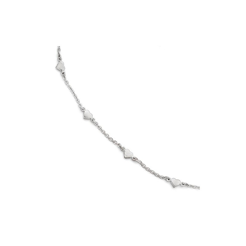 QLF506-10 Leslies Sterling Silver Polished Heart Anklet 9" with 1in extention