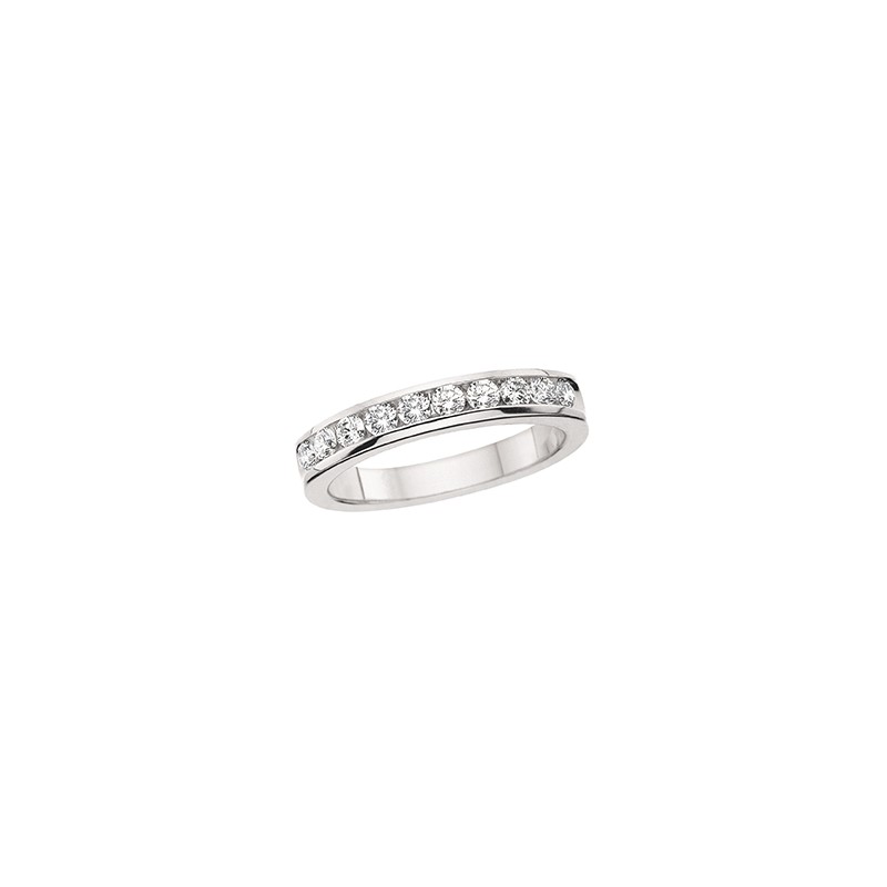 Stunning 14K white gold celebration ring. Ten channel set diamonds, 1/3tw. Comfort fit.