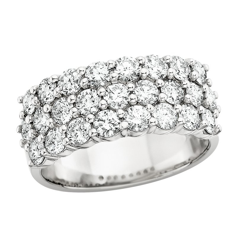 Breathtakingly Beautiful. This three row diamond band, adorned with 25 glittering diamonds with a total weight of 2 carats. Crafted in luxurious 14K white gold, this stunning piece embodies elegance and romance.