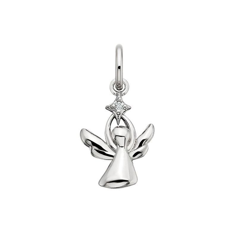 A heavenly touch for your collection, this sterling silver angel charm holds a luminous bright white topaz star, symbolizing light and inspiration in a charming design