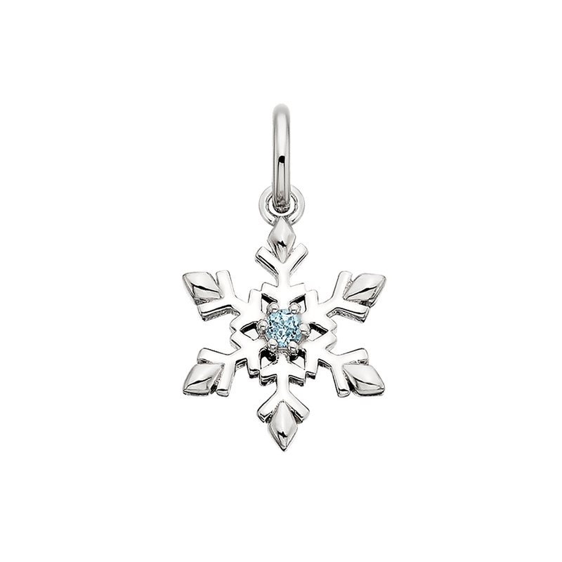 A tiny marvel of winter, this sterling silver snowflake charm features a whimsical design brought to life by sparkling white and blue topaz gemstones, adding a touch of enchanting charm to your collection.