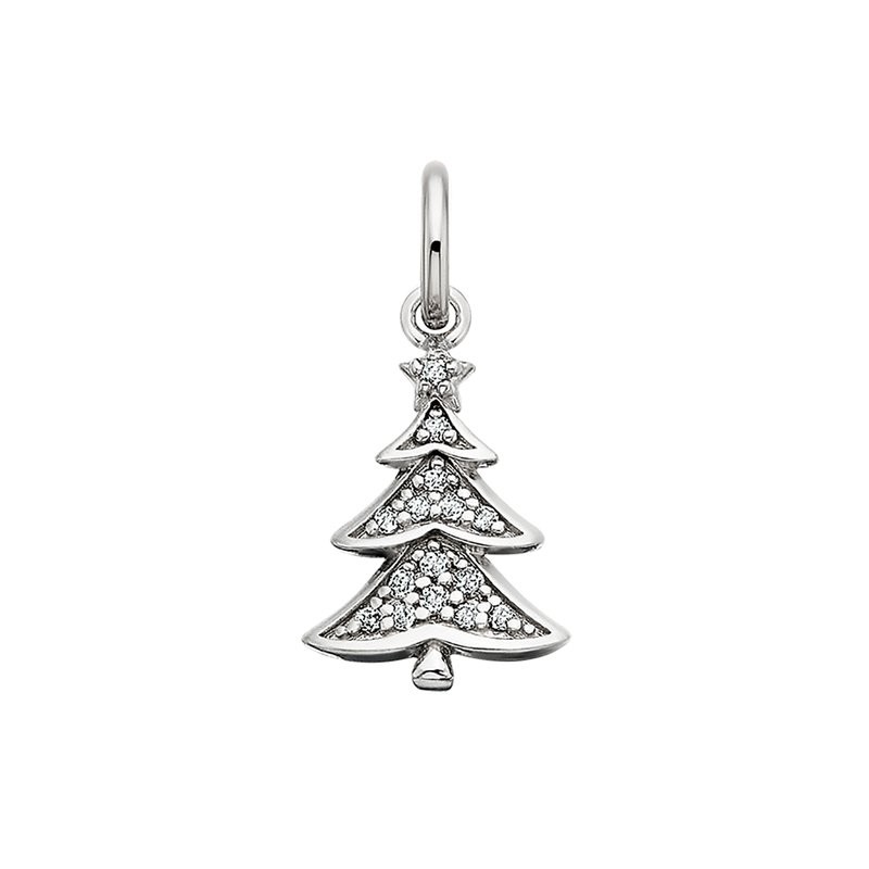 A tiny tree of pure winter magic, this sterling silver Christmas charm twinkles merrily with the icy brilliance of white topaz gemstones, ready to add a touch of festive wonder to your collection.