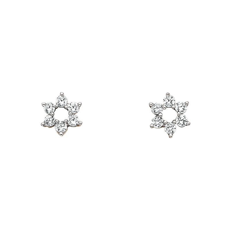 Six diamonds form a shimmering star in these dainty stud earrings. Set in timeless ten-karat gold. Total diamond weight is .10ct.