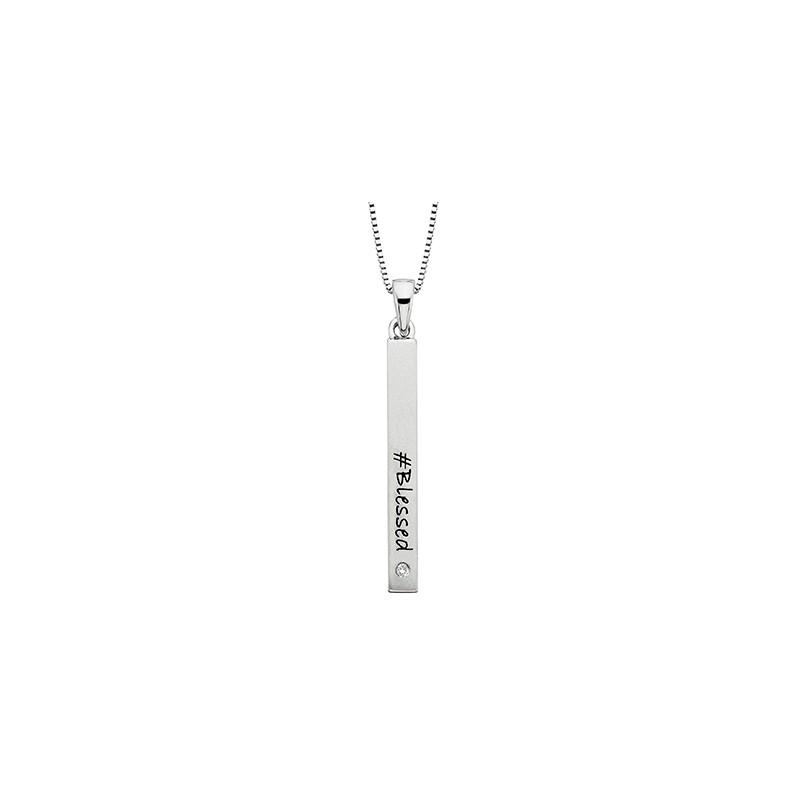 A sterling silver and genuine diamond “Blessed” bar necklace reminds us every day to give thanks for all the blessings we receive, large and small. Includes an 18" box chain.