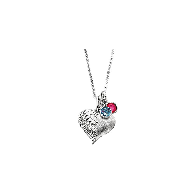 a new matte finished sterling silver heart, featuring an antique finished angel wing. Engraved on the back is “Blessings”, add birthstone charms to signify each child/grandchild. A sterling silver 18" to 20" adjustable chain is included. "MOMMY CHIC BIRTHSTONES, INITIALS AND CHARMS ARE SOLD SEPARATELY