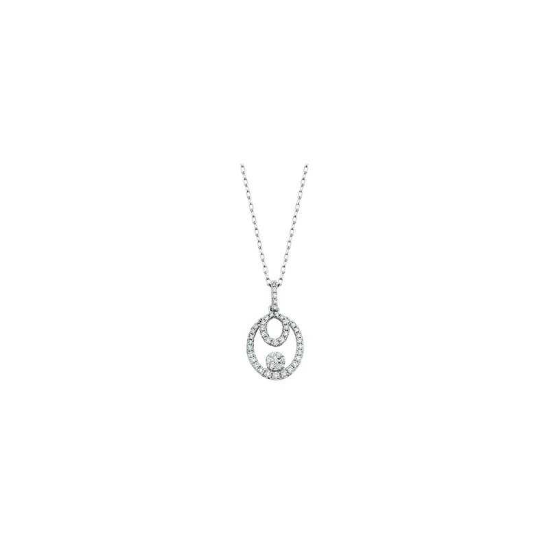Oval shaped diamond pendant crafted in 14kt white gold from the "Endless Radiance" collection with diamond clusters totaling .20tw.