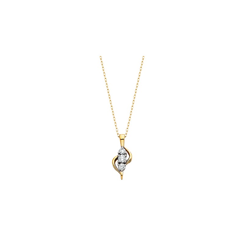 Each diamond represents a chapter of your love in the newest edition to our Yesterday, Today, Tomorrow collection. Ribbons of 14K yellow and white gold wrap around 3 round brilliant diamonds for a .15tw. Matching ring available.