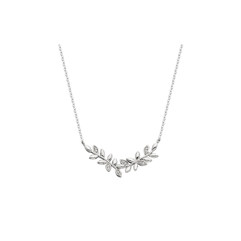 Inspired by nature, leaves of highly polished sterling silver and .04tw diamonds form an on-trend vine necklace. Matching earrings available.