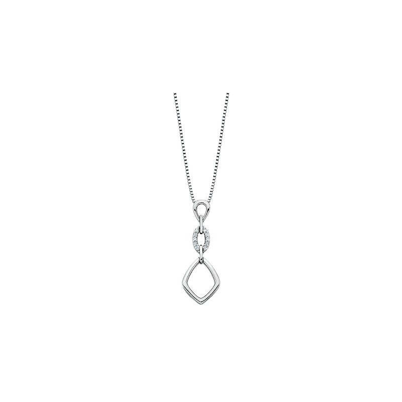 Softly rounded geometric links make for mesmerizing movement in this sterling silver pendant. Ten glittering diamonds highlight the center link. Total diamond weight is 0.04 ct. Matching earrings also available.