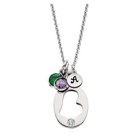 A beautiful open heart sterling silver pendant set with a white topaz. A sterling silver 18" to 20" adjustable chain is included. "MOMMY CHIC BIRTHSTONES, INITIALS AND CHARMS ARE SOLD SEPARATELY.