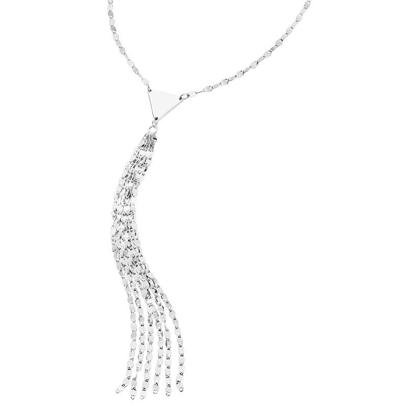 a long flowing tassel necklace in sterling silver.