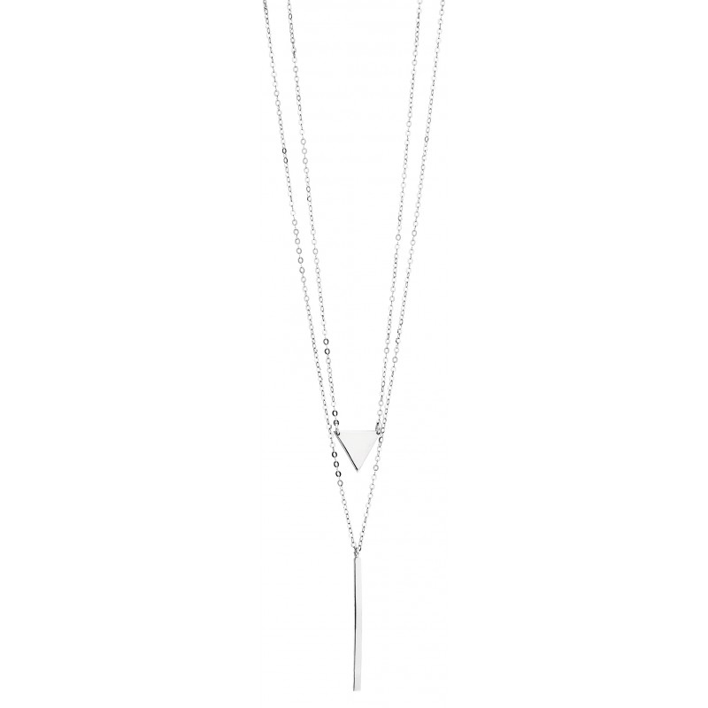 Featuring a geometric and triangular design, this double strand necklace is the perfect piece of jewelry for every occasion. Comfortable and easy to wear with a cascading waterfall look when layered together, it will bring a touch of elegance to your ensemble. Crafted in high polish sterling silver and a link chain secured with a lobster clasp.