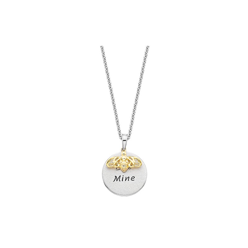 Keep those you love close with this personalized disc design pendant necklace. Engraved with the word BEE MINE, it's a beautiful way to show off your loved one. This pendant is crafted in sterling silver with a yellow gold overlay bee design and suspended from a link chain that secures with a lobster clasp.