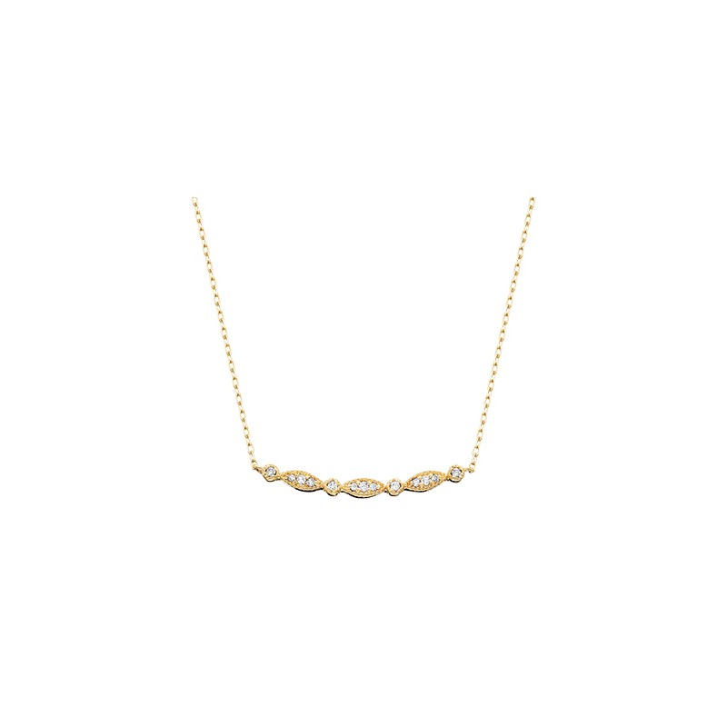 This 10k yellow gold necklace appeals with a vintage-inspired, marquise-round design set with .09tw in round diamonds. 18 inches.