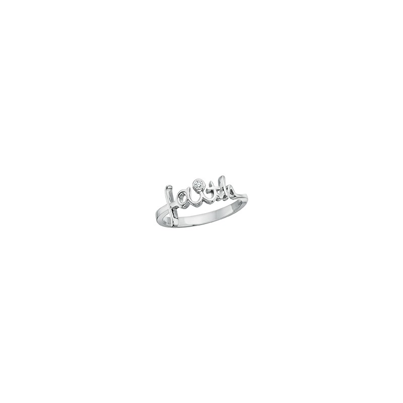 This "Faith" ring is from our "Grace Collection" of faith inspired jewelry. Written in a script font, the word "faith" serves as a daily reminder of your connection to God. Accented with one bezel set round diamond. See matching Pendant.