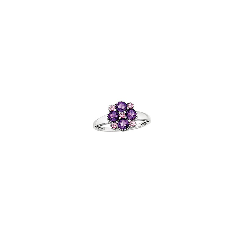 From our "Aspire 925" collection a vibrant display of amethyst and pink tourmaline captures attention in this unforgettable sterling silver ring. Available sizes 6-9, matching pendant A1882AM.